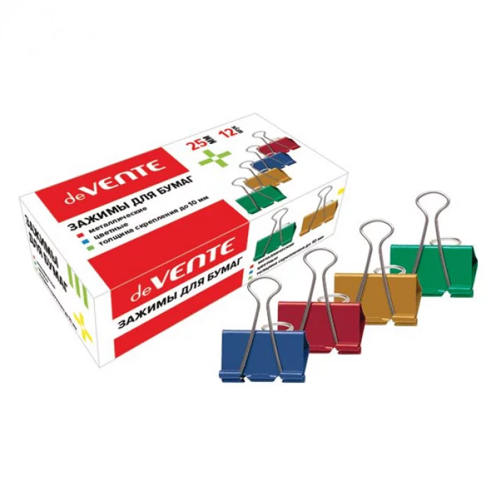 Зажимы цветные 25мм 12шт/уп DEVENTE 4131002 383735