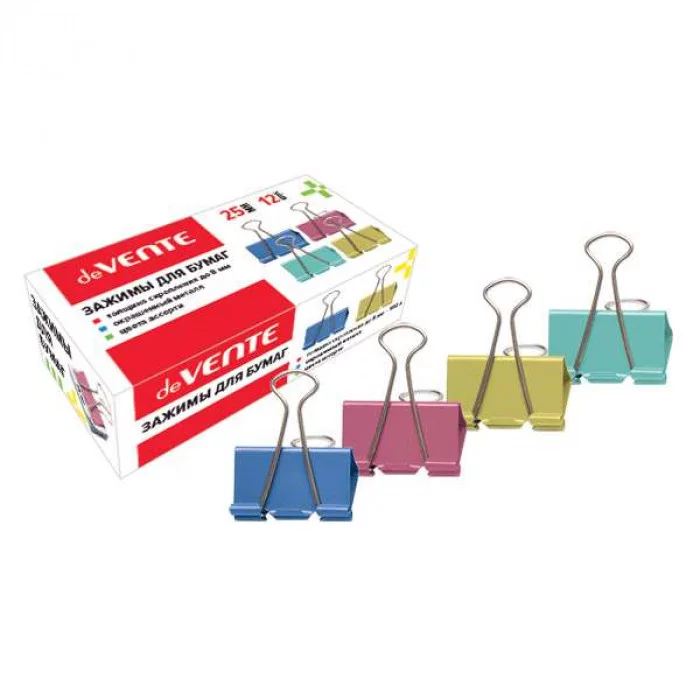 Зажимы цветные 25мм 12шт/уп DEVENTE 4131315 383575