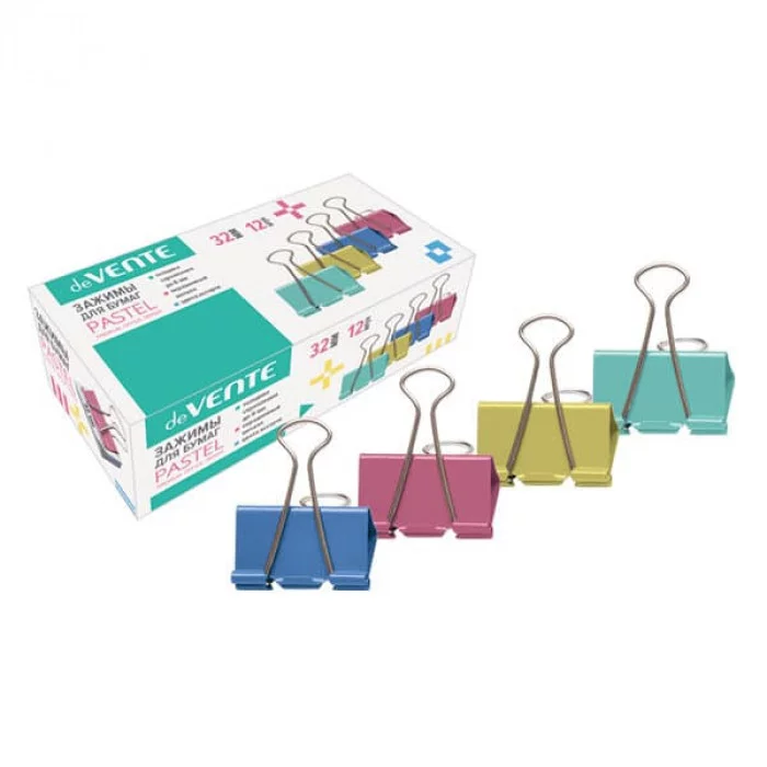 Цветной металлический зажим для бумаг "deVENTE. Pastel" -незаменимое приспособление современного офиса при работе с большим объёмом документов. Предназначены для скрепления, правильного упорядочивания и быстрого поиска бумаг. Простой канцелярский крепёж шириной 32 мм, способен скрепить до 135 листов бумаги плотностью 80 г/м2, без нарушения её целостности. Цветной корпус "прищепки" удобен для цветовой индикации сортировки документов, а также станет уместным ярким акцентом в создании позитивной атмосферы рабочего места. Не ржавеют, обеспечивают надёжное скрепление. Подходят для многократного использования.