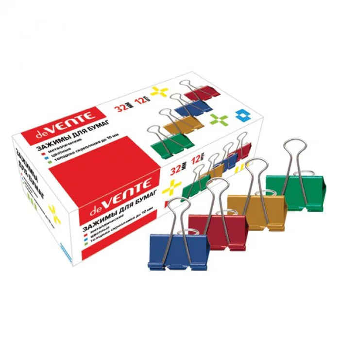 Зажимы цветные 32мм 12шт/уп DEVENTE 4131003 383734