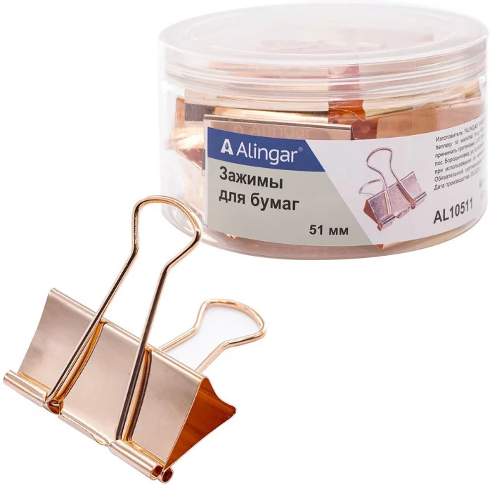 Зажимы для бумаг 51 мм, Alingar, красное золото уп. 12 шт AL10511
