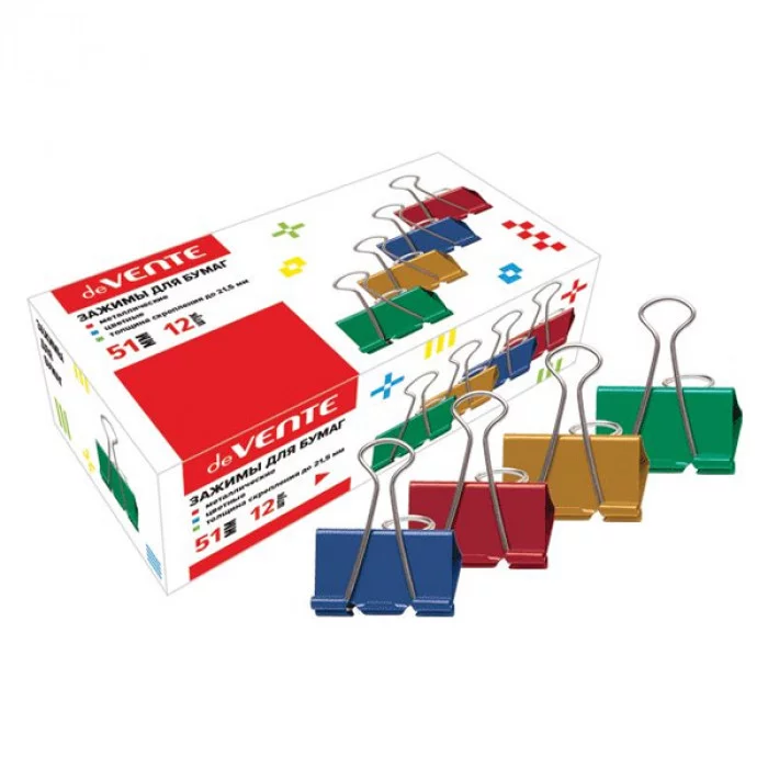 Зажимы цветные интенсив 51мм 12шт/уп DEVENTE 4131005