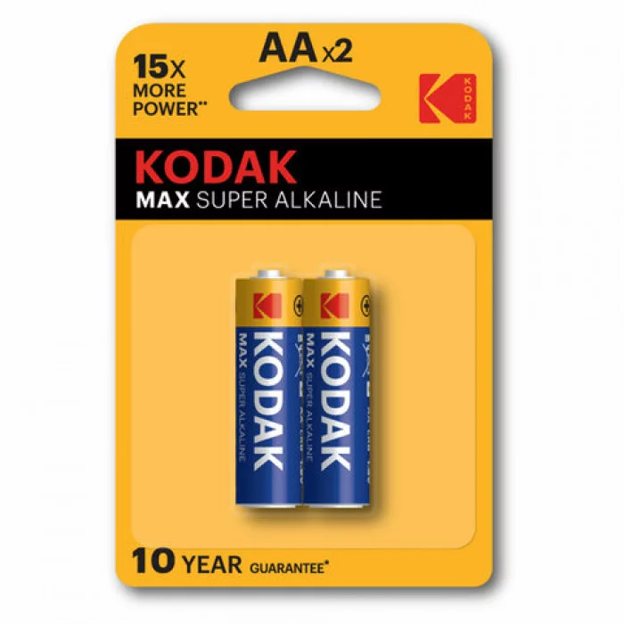 Батарейки алкалиновые "пальчиковые" КОМПЛЕКТ 2 шт., KODAK Max Super Alkaline, АА (LR6, 24А), блистер, Б0005131