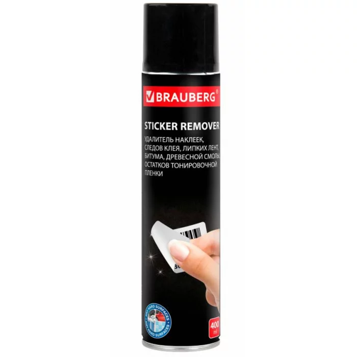 Средство BRAUBERG предназначено для быстрого и эффективного удаления остатков клея, клейкой ленты, тонировочной пленки, битума, информационных наклеек и рекламы.