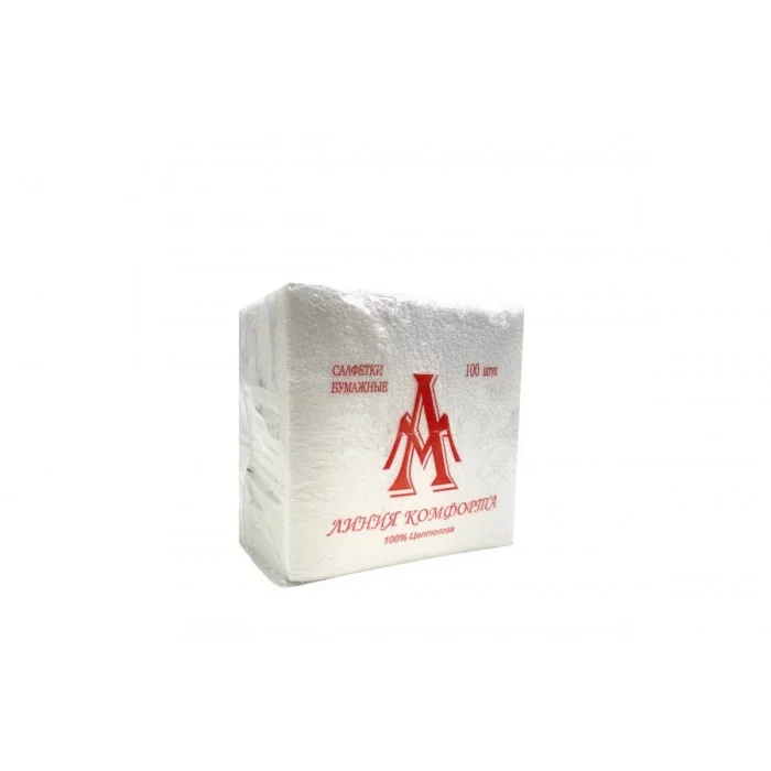 Салфетки бумажные ЛИНИЯ КОМФОРТА 100 шт БЕЛЫЕ 61402