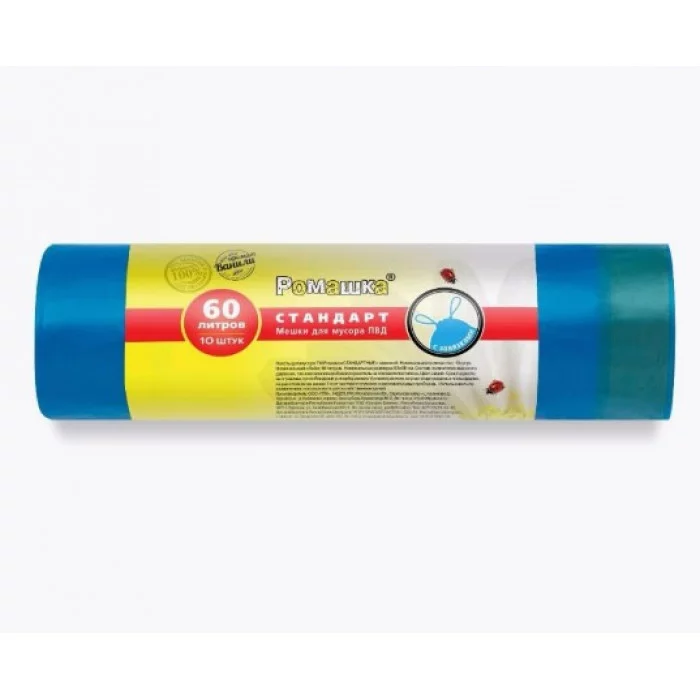 Мешки для мусора РОМАШКА СТАНДАРТ с завязками 60 литров 10 штук, размер 60*68 .