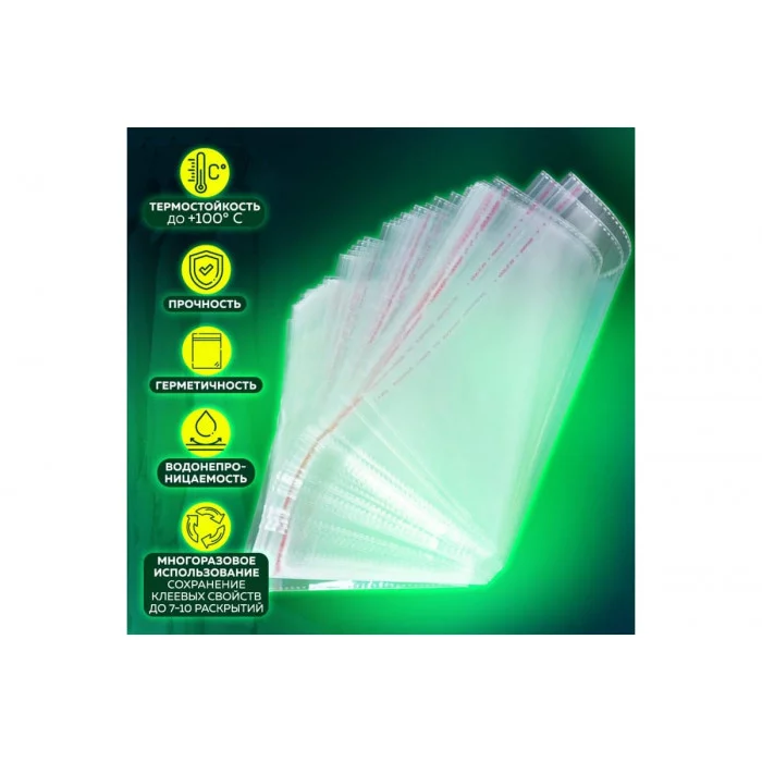 Пакет БОПП с клеевым клапаном 10х10+4 см, 25 мкм, с усиленным швом