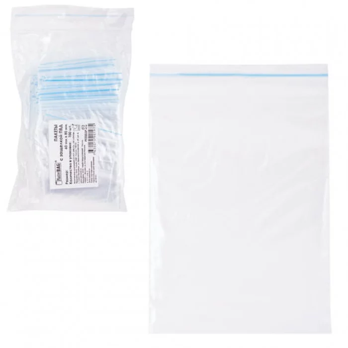 Пакет с замком "зиплок" (гриппер), 1шт., 60х80 мм, ПВД, 32 мкм Разбор600866