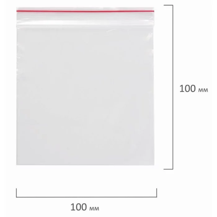 Пакеты с замком ZIP LOCK "зиплок", комплект 100 шт., 100х100 мм, ПВД, толщина 35 микрон, BRAUBERG, 606210