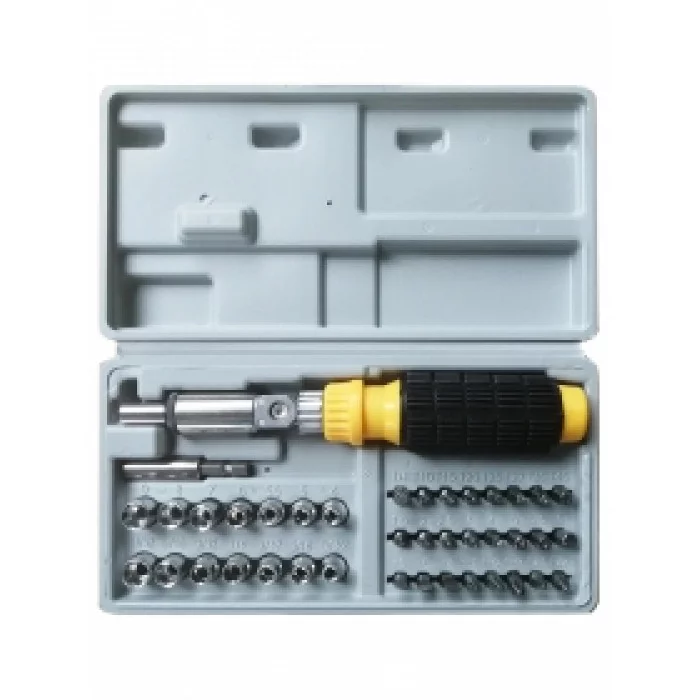 Отвёртка реверсивная с набором бит и головок (21, 5х11, 5х4 см, 40 предм., углерод. сталь, в кейсе) (10702070/261020/0262433/2, КИТАЙ) HJJS41PC