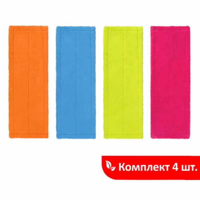 Насадка МОП плоская КОМПЛЕКТ 4 шт, УНИВЕРСАЛЬНАЯ для швабр 38-42 см (ТИП К), микрофибра, ЛАЙМА 60745
