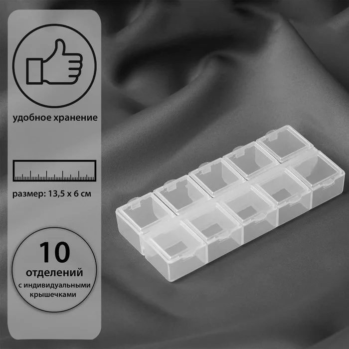 Контейнер для бисера 10 отд 13, 5*6, 5*2см пластик прозрачный АУ 1528832