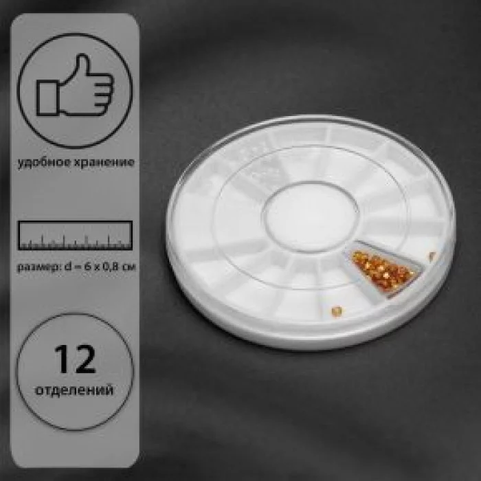 Контейнер для бисера карусель 12 отделений d6*0,8см АУ 2290211