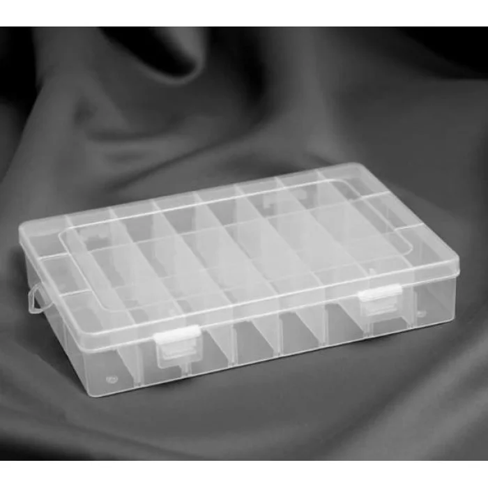 Контейнер со съём-ми ячейками для рукоделия 24 отд 19,5*13,5*3,5см прозрачный АУ 3633392