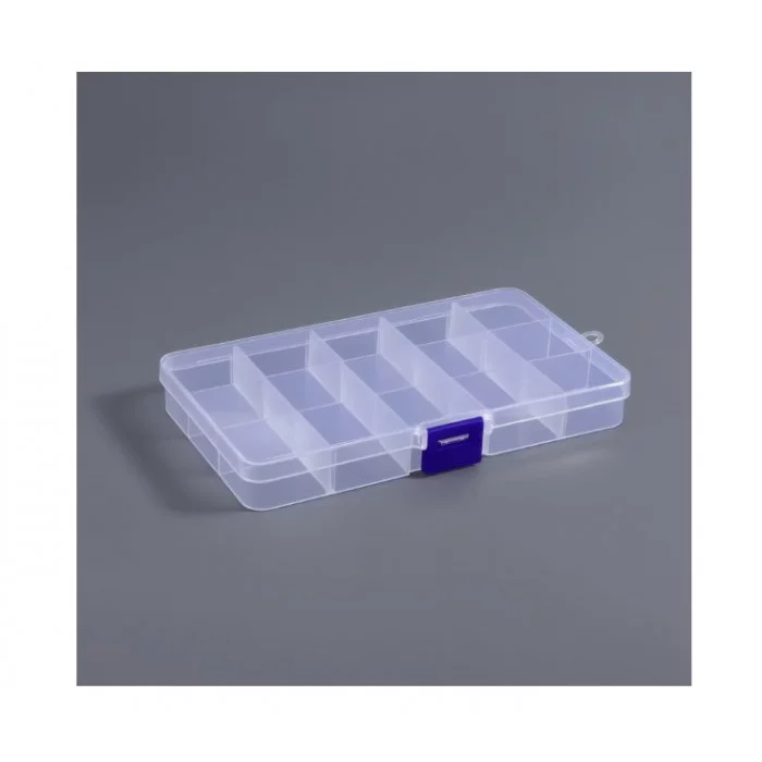 Созданный из прочного пластика, этот контейнер прекрасно подходит для хранения украшений, бусин, аксессуаров для рукоделия или домашних мелочей. Каждая из 15 секций надежно закрывается крышкой, что предотвращает выпадение содержимого даже при активном использовании.