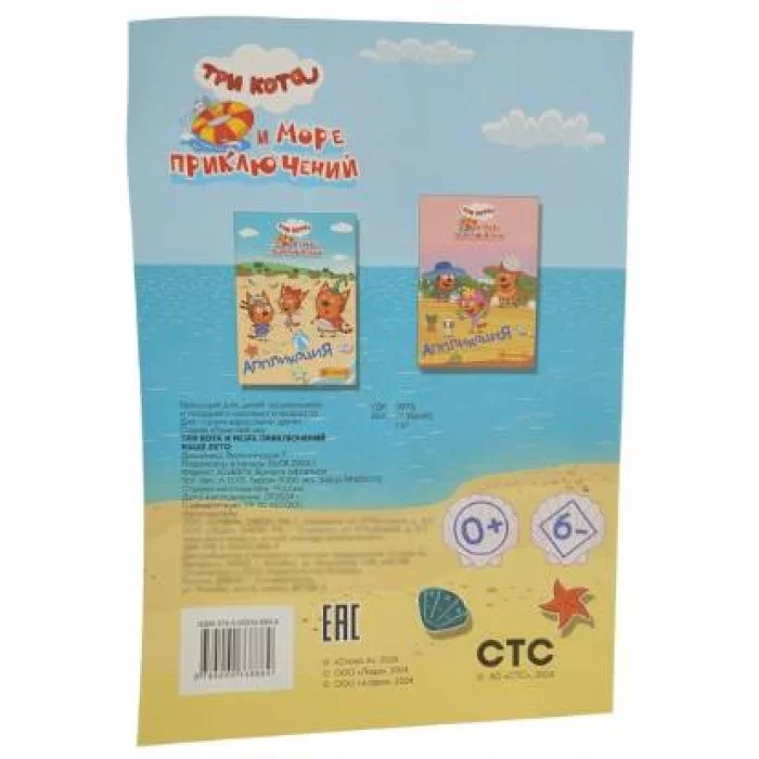 Аппликация Три кота Приклей-ка и море пр Наше лето 9785000338889