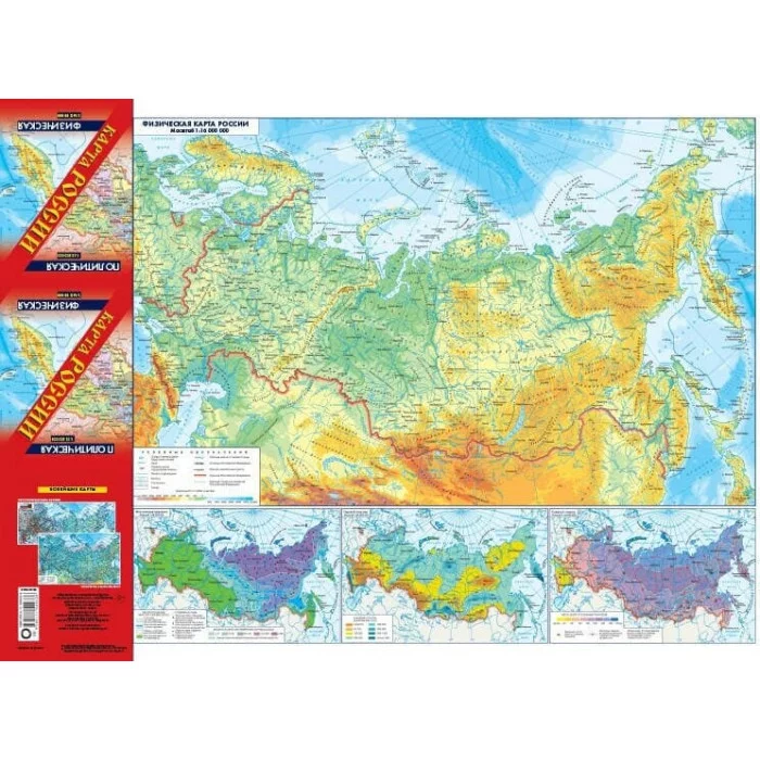 На обновлённой двухсторонней складной карте формата 630х455 мм представлены с одной стороны - физическая карта России масштаба 1:16 000 000, отражающая особенности рельефа и гидрографии страны в новых границах, а с другой стороны - политическая карта России масштаба 1:13 500 000, на которой отражены в составе 8 федеральных округов все 89 субъектов РФ, включая Республику Крым и г. Севастополь, Донецкую и Луганскую народные республики, Херсонскую и Запорожскую области. Физическая карта дополнена картами (в масштабе 1:48 000 000) распространения многолетней мерзлоты, величин годового стока рек, толщины снежного покрова. Формат издания в сложенном виде - 105х155 мм.