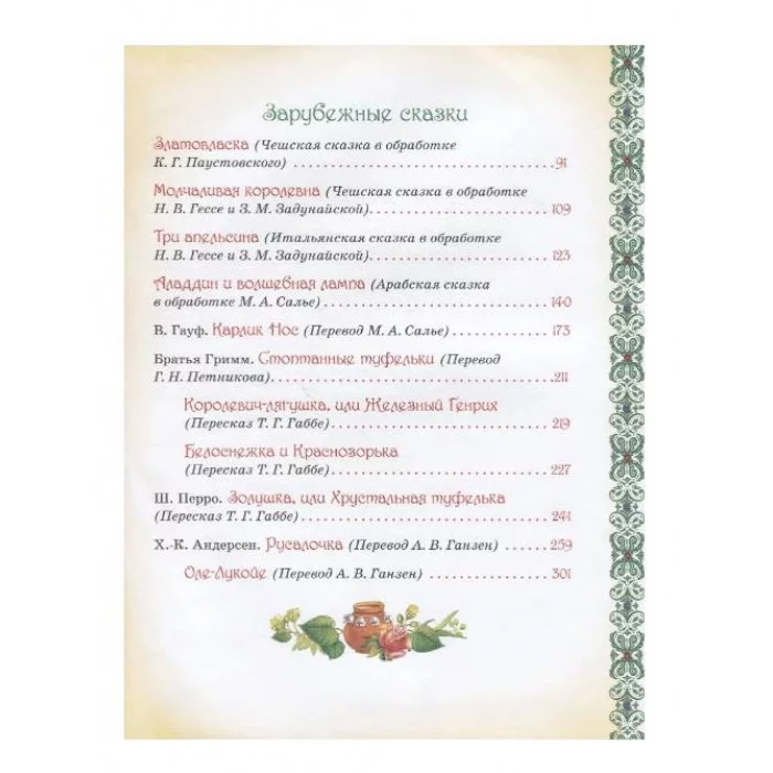 В этой красивой подарочной книге с нарядным разноцветным узором на обрезе собраны самые лучшие сказки из сокровищницы мировой литературы: русские волшебные сказки, сказки русских писателей - В.Одоевского, В.Гаршина, а также сказки народов мира и произведения лучших сказочников - Х.-К. Андерсена, братьев Гримм, Ш. Перро, В. Гауфа.