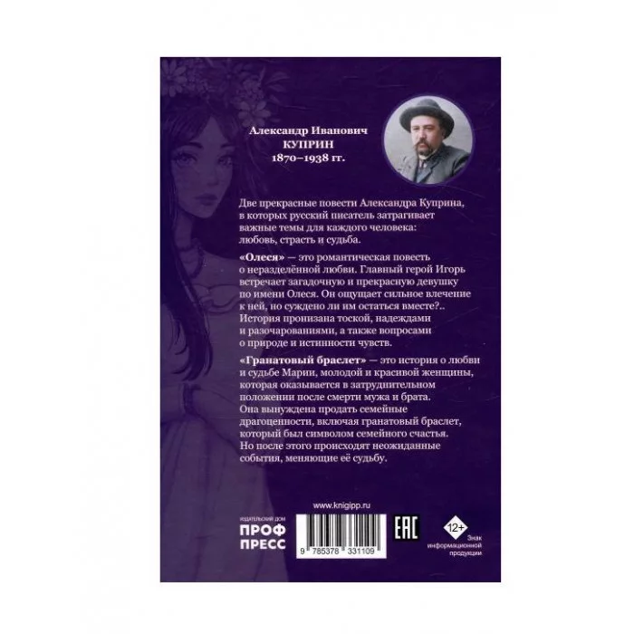 МИРОВАЯ КЛАССИКА. Александр Куприн. Гранатовый браслет. Олеся 176 стр 978-5-378-33110-9