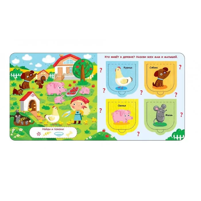 Эта познавательная обучающая книжка познакомит малыша с разными животными и расскажет какие бывают мамы и малыши. Заниматься по ней просто и интересно. Ребёнку нужно рассмотреть внимательно картинки и ответить на вопросы. А потом открыть окошки и проверить себя. А еще не забудьте найти на картинках заданные предметы.