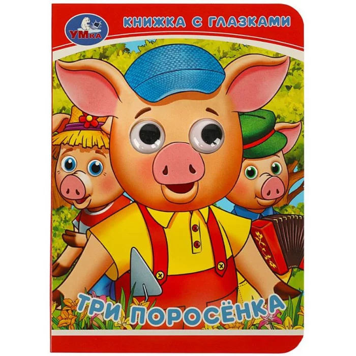 Малыш с удовольствием будет разглядывать большие красочные картинки с забавными подвижными глазками, трогать их пальчиками и слушать интересную сказочную история о братьях-поросятах и волке. Книга сделана из плотного картона, поэтому мамы могут не опасаться, что ребёнок порвет странички. Благодаря компактному размеру книгу удобно брать с собой в дорогу.