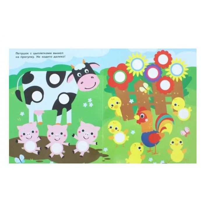Приклеивая на картинки в этой книге яркие разноцветные многоразовые наклейки - кружочки, ваш малыш сможет повторять названия цветов и предметов, развивать мелкую моторику и усидчивость.