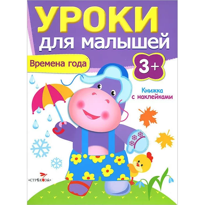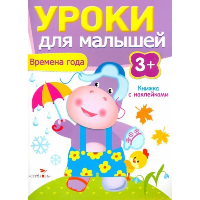 это книга, разработанная Ириной Поповой, предназначенная для детей от трех лет. Эта книга входит в серию "Уроки для малышей" и направлена на знакомство детей с временами года через игровые задания и наклейки.
