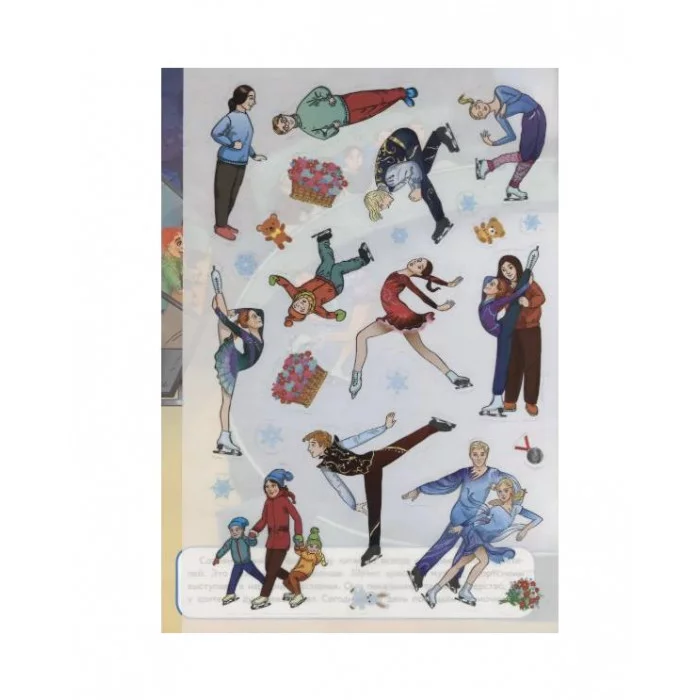 В этой книжке ты сможешь вместе с фигуристами поучаствовать в соревнованиях по фигурному катанию. А многоразовые наклейки сделают игру ещё интереснее!