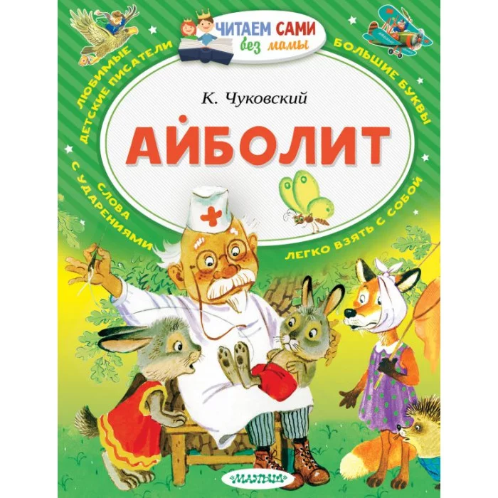 В книжку вошли самые любимые детские сказки Корнея Чуковского – «Айболит», «Бармалей» и «Топтыгин и Луна». Ребята с удовольствием прочитают эти сказки самостоятельно, ведь с книжкой серии «Читаем сами без мамы» это так легко сделать! Удобный формат, большие буквы, слова с ударениями и замечательные цветные иллюстрации превратят чтение в увлекательное занятие. Книжки серии «Читаем сами без мамы» можно взять с собой в дорогу, на прогулку и читать вместе с друзьями!