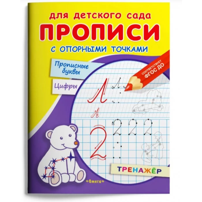 Обучение письму — занятие долгое и трудное для ребенка. Сделать его простым, интересным и правильным помогут «Прописи с опорными точками. Прописные буквы и цифры. Созвездия», вышедшие в серии «Для детского сада» издательства «Омега».