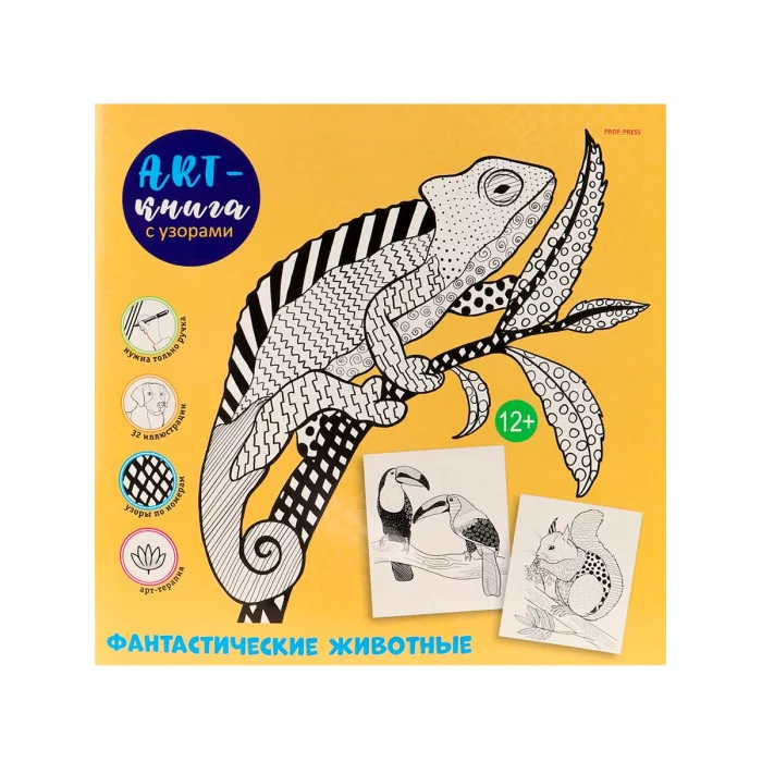 Арт-книга с узорами ФАНТАСТИЧЕСКИЕ ЖИВОТНЫЕ (Р-7797) 16л,обл цел карт,твин-лак,бл.офс.ч/б Р-7797