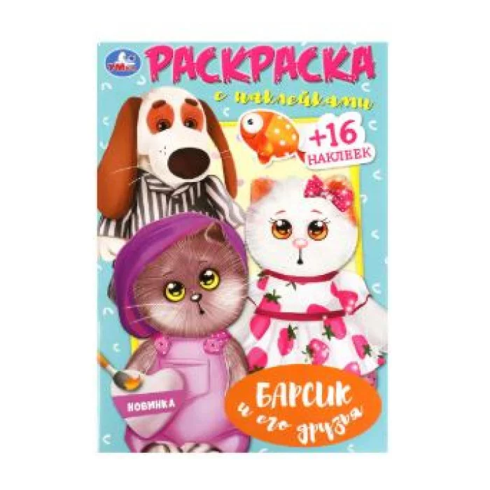 Барсик и его друзья Наклей и раскрась 145х210 мм Скрепка 16 стр Умка 978-5-506-09030-4