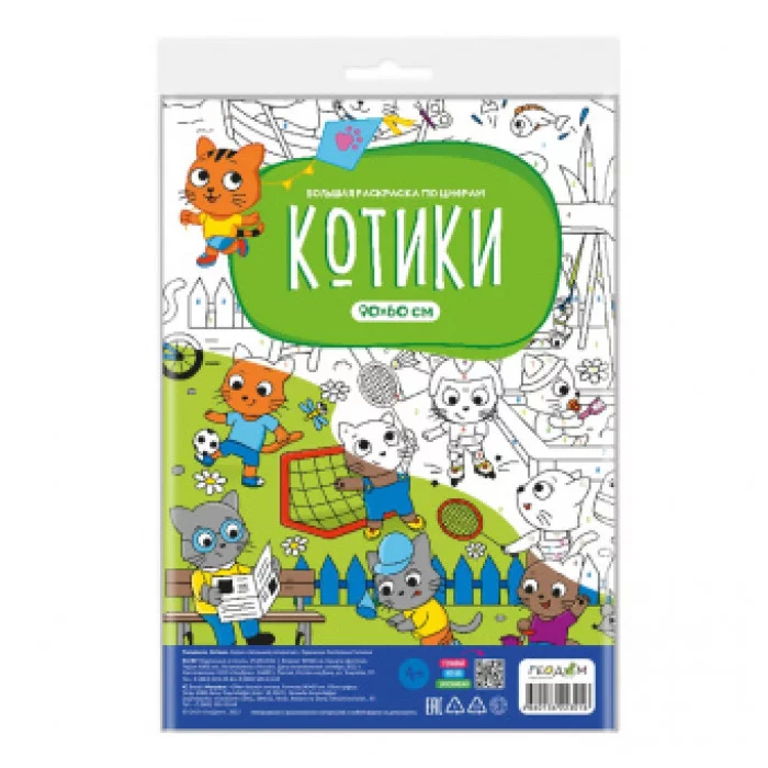 Большая раскраска по цифрам. Котики. 90х60 см. ГЕОДОМ
