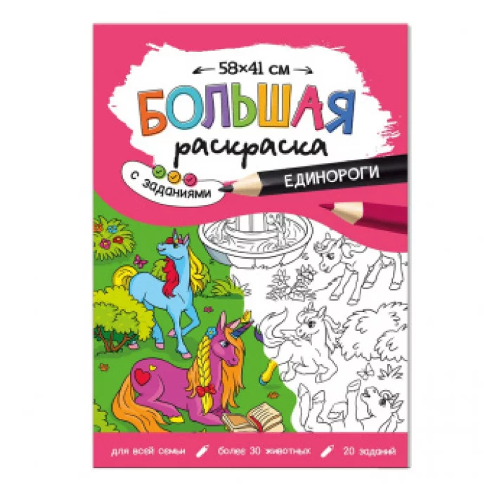 Большая раскраска с заданиями. Единороги. 58х41 см. ГЕОДОМ