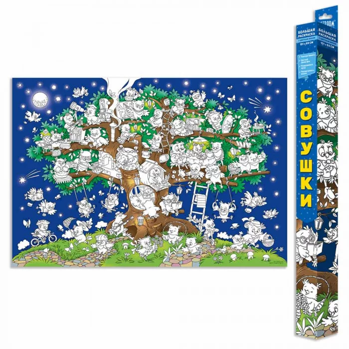 Большая раскраска. Совушки. 101х69 см. ГЕОДОМ изд-во: Гео-дом