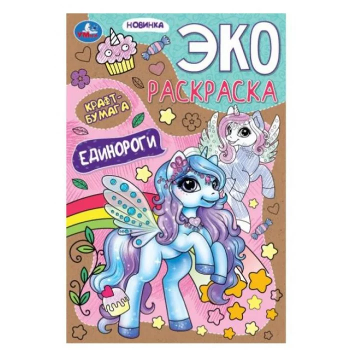Единороги Эко-раскраска крафт-бумага 190х285мм Скрепка 16 стр Умка 978-5-506-07533-2