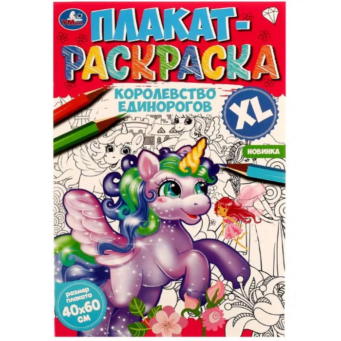 Королевство единорогов Плакат-раскраска 400х590 мм Скрепка 4 стр Умка 978-5-506-07472-4