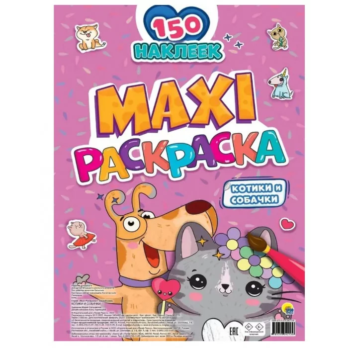 МАКСИ-РАСКРАСКА с наклейками. КОТИКИ И СОБАЧКИ 978-5-378-34213-6