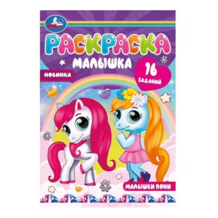 Малышки пони Раскраска-малышка 16 заданий 145х210 мм 8 стр Скрепка Умка 978-5-506-07370-3