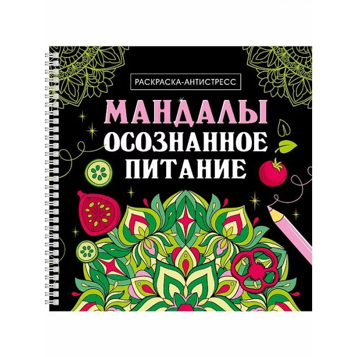 МАНДАЛЫ. РАСКРАСКА-АНТИСТРЕСС на гребне. ОСОЗНАННОЕ ПИТАНИЕ 978-5-378-35329-3