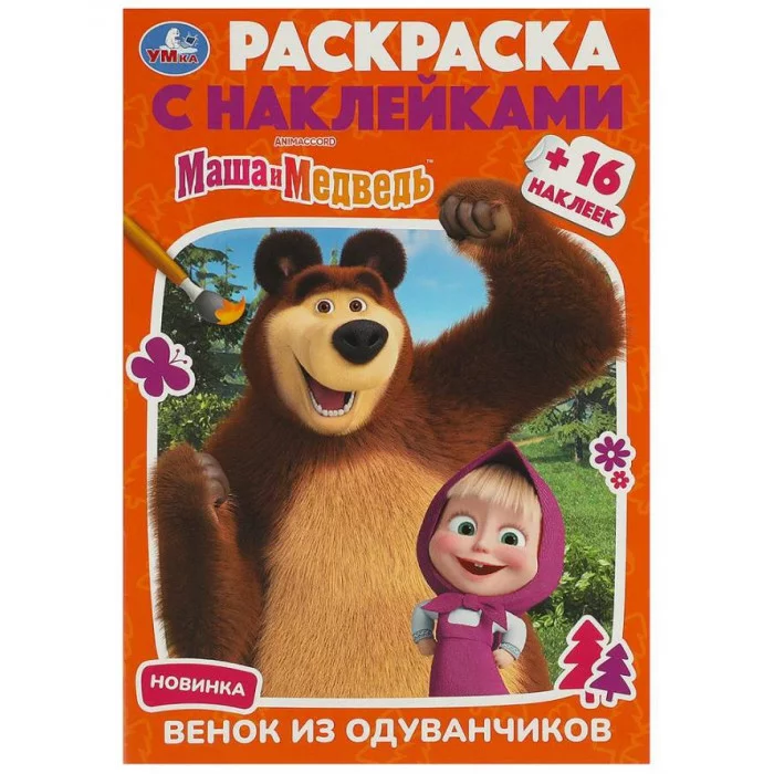 Раскраска с наклейками «Маша и Медведь. Венок из одуванчиков» ТМ «УМка» станет прекрасным подарком для детей: