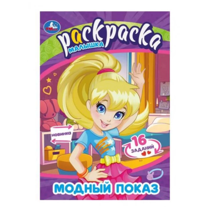 Модный показ Раскраска Малышка 16 заданий 145х210 мм Скрепка 8 стр Умка 978-5-506-09070-0