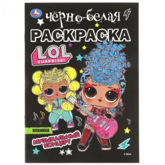Чёрно-белая раскраска «ЛОЛ. Музыкальный концерт» ТМ «УМка» станет отличным подарком для юного художника: