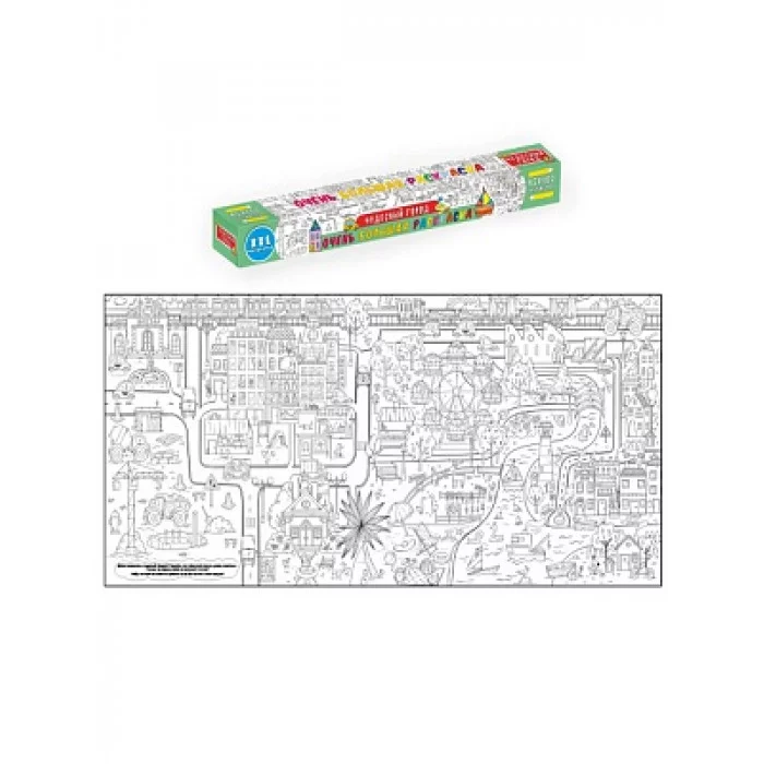 Эта раскраска-плакат станет отличным развлечением для всей семьи: её могут раскрашивать одновременно несколько человек! На ней изображены разные сценки из жизни города, по которым можно придумывать собственные истории, что превратит раскрашивание в увлекательную игру. Когда картинка будет полностью раскрашена, можно повесить её на стену и любоваться своим творением!