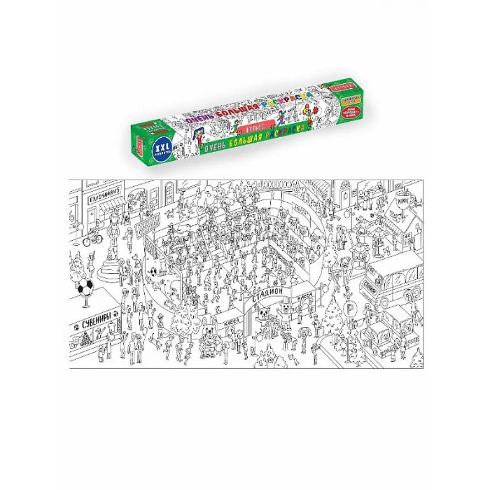 Эта раскраска-плакат станет отличным развлечением для всей семьи: её могут раскрашивать одновременно несколько человек! На ней изображён футбольный стадион, футболисты, болельщики, множество забавных сюжетов и интересных деталей, благодаря которым раскраска понравится даже детям, которые не интересуются футболом. Когда картинка будет полностью раскрашена, можно повесить её на стену и любоваться своим творением!