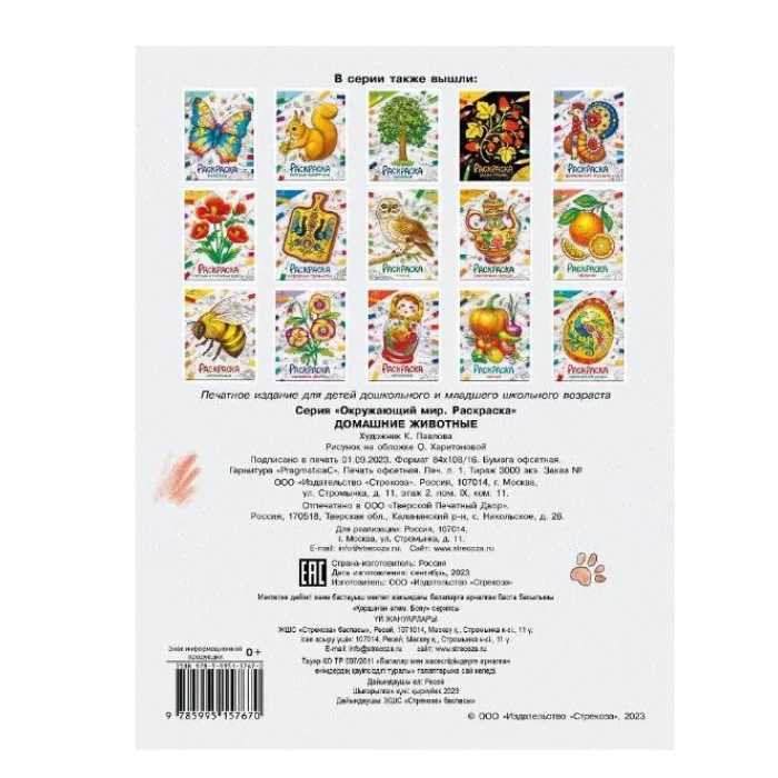 Окружающий мир. Раскраска. Домашние животные Стрекоза - Окружающий мир. Раскраска 978-5-9951-5767-0
