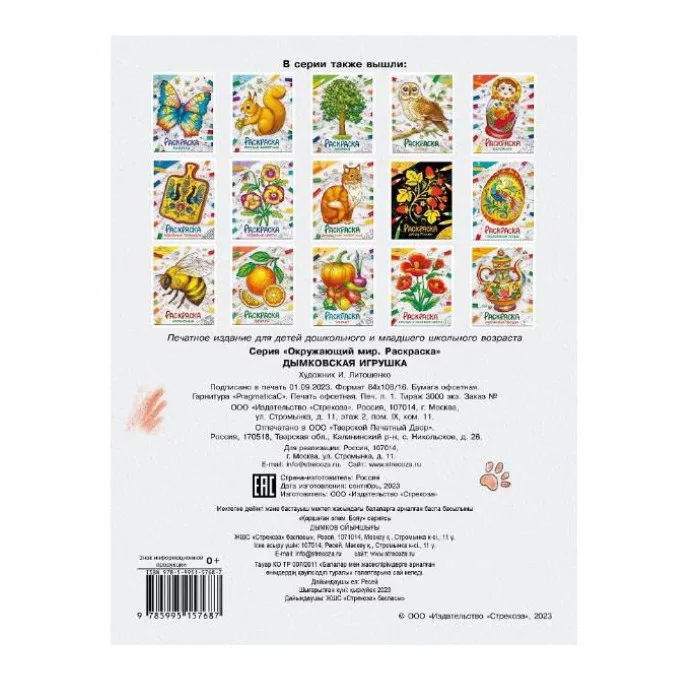 Окружающий мир. Раскраска. Дымковская игрушка Стрекоза - Окружающий мир. Раскраска 978-5-9951-5768-7