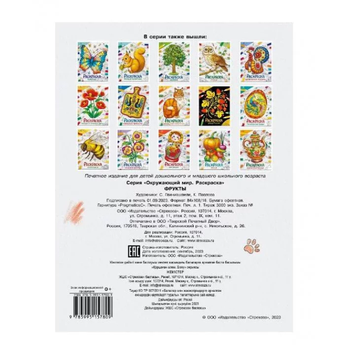 Окружающий мир. Раскраска. Фрукты Стрекоза - Окружающий мир. Раскраска 978-5-9951-5780-9