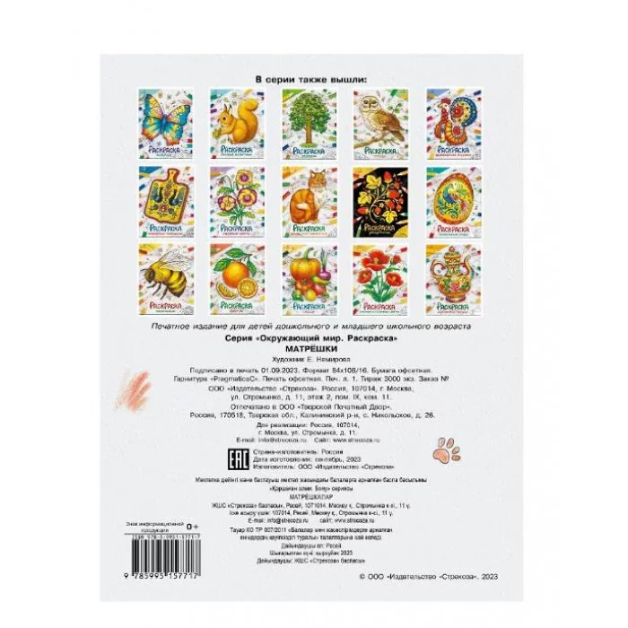 Окружающий мир. Раскраска. Матрёшки Стрекоза - Окружающий мир. Раскраска 978-5-9951-5771-7