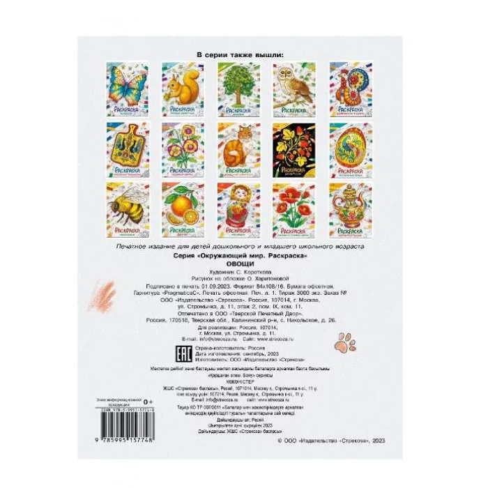 Окружающий мир. Раскраска. Овощи Стрекоза - Окружающий мир. Раскраска 978-5-9951-5774-8